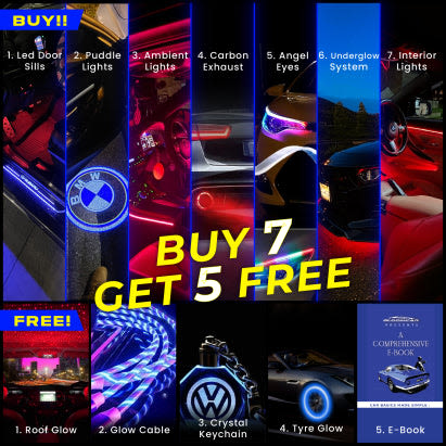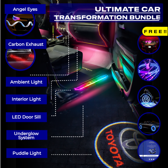 From the vibrant LED Door Sills and striking Ambient Lights to the bold Carbon Exhaust and show-stopping Under Glow, every element in this bundle is engineered for maximum impact. Add the Angel Eyes and Interior Lights for a premium finish, and the Roof Glow to create a magical nighttime atmosphere that turns every drive into a spectacle.